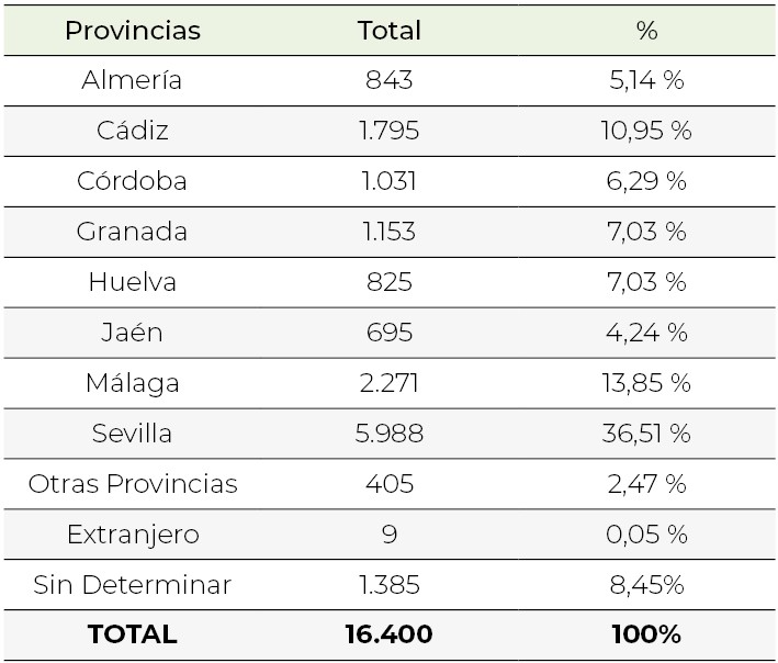 Es importante señalar el grado de conocimiento de nuestra institución en toda la población de la comunidad autónoma: hemos recibido consultas desde más de 550 municipios de Andalucía.