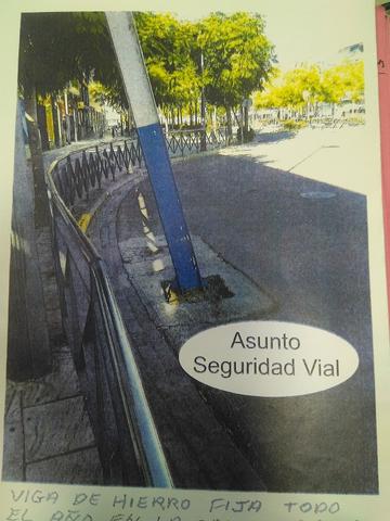 Un vecino de Ecija nos cuenta un grave problema se seguridad vial en su Municipio, Ecija: una viga que se utiliza como soporte para la portada de feria que dura cino días, está colocada en la calzada de forma permanente.