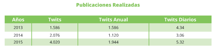 Comenzamos el año 2015 con 1.758 seguidores, habiéndose registrado un incremento de 1.175 a lo largo del año, de tal forma que el número final a 31 de diciembre de 2015 es de 2.933.