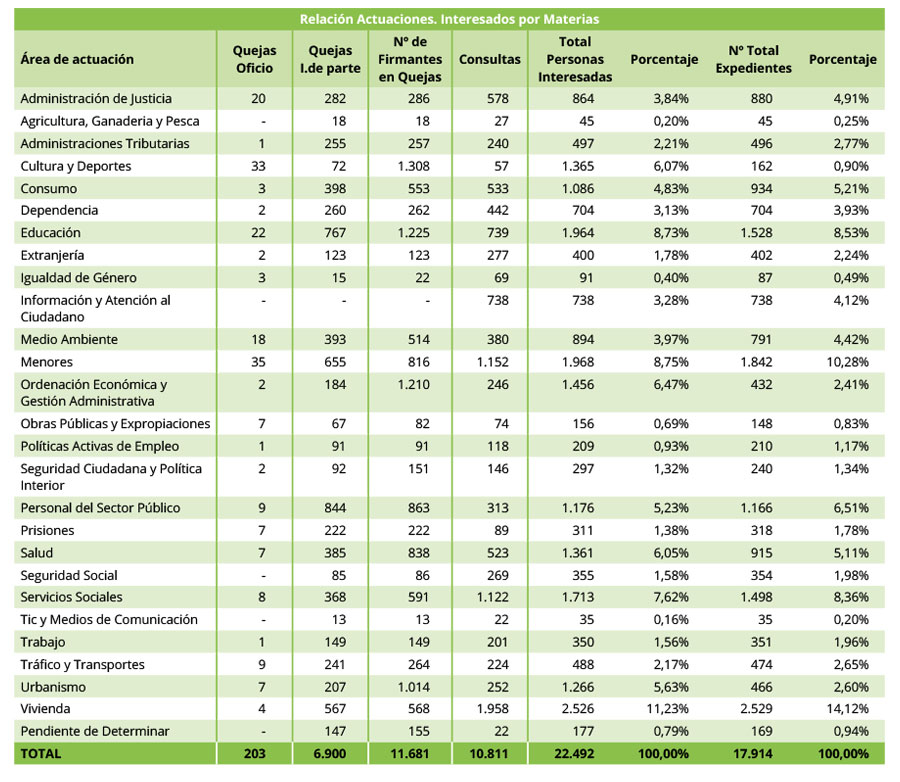 Relación Actuaciones. Interesados por Materias