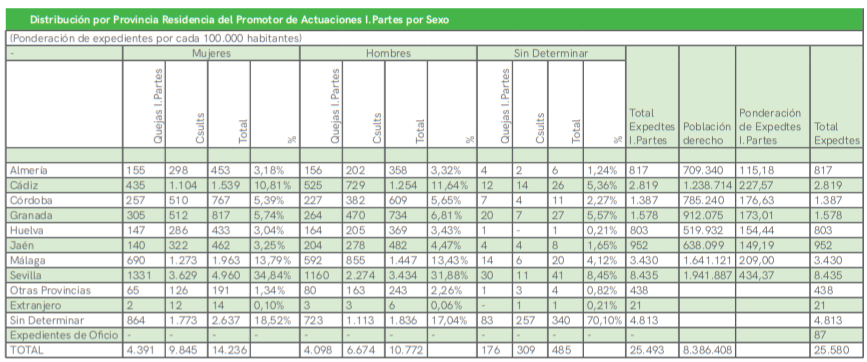 16. Distribución por Provincia Residencia del Promotor de Actuaciones I.Partes por Sexo