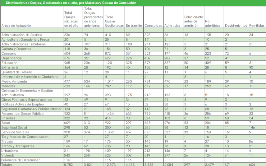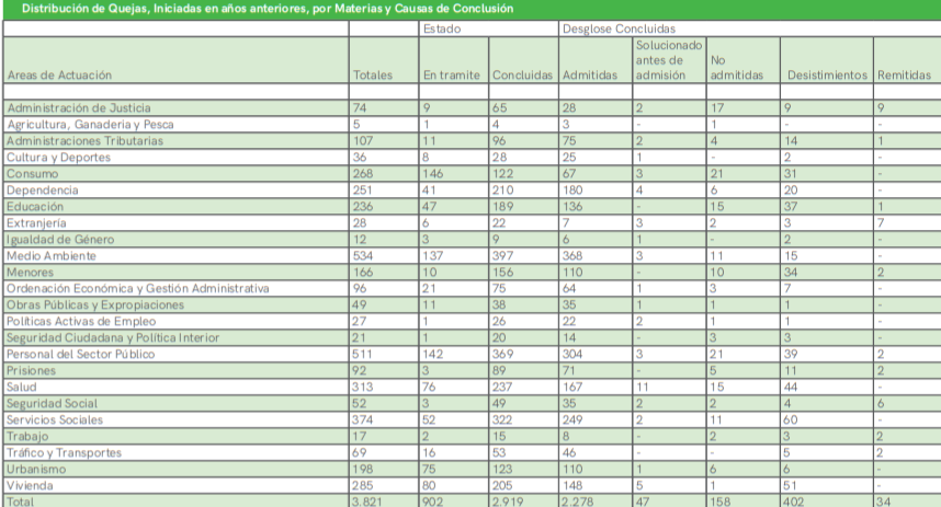 3. Distribución de Quejas, Iniciadas en el año, por Materias y Causas de Conclusión