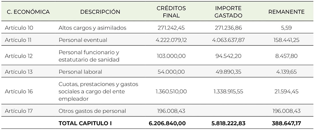 A la finalización del citado ejercicio se ha concluido la ejecución de la primera anualidad del referido Plan de Formación del periodo 2023-2024, habiéndose desarrollado sus previsiones para este ejercicio a través de la realización de las mencionadas 270 formaciones recibidas por 77 personas de entre las que conforman la plantilla (80 sin contar altos cargos). Ello ha supuesto un total de 3.372 horas de formación en el año. El coste anual medio por persona en plantilla ha sido de 122,56.euros y el importe medio por persona efectivamente formada de 127,33. euros, mientras que el importe medio por cada una de las formaciones recibidas equivale a 213,15 euros.