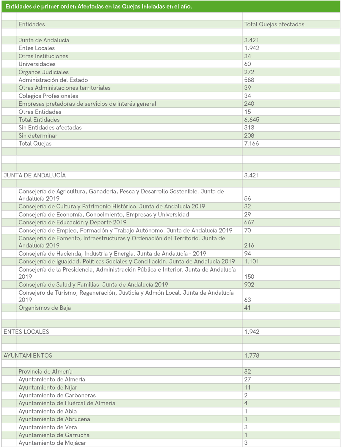 18. Entidades de primer orden Afectadas en las Quejas iniciadas en el año.