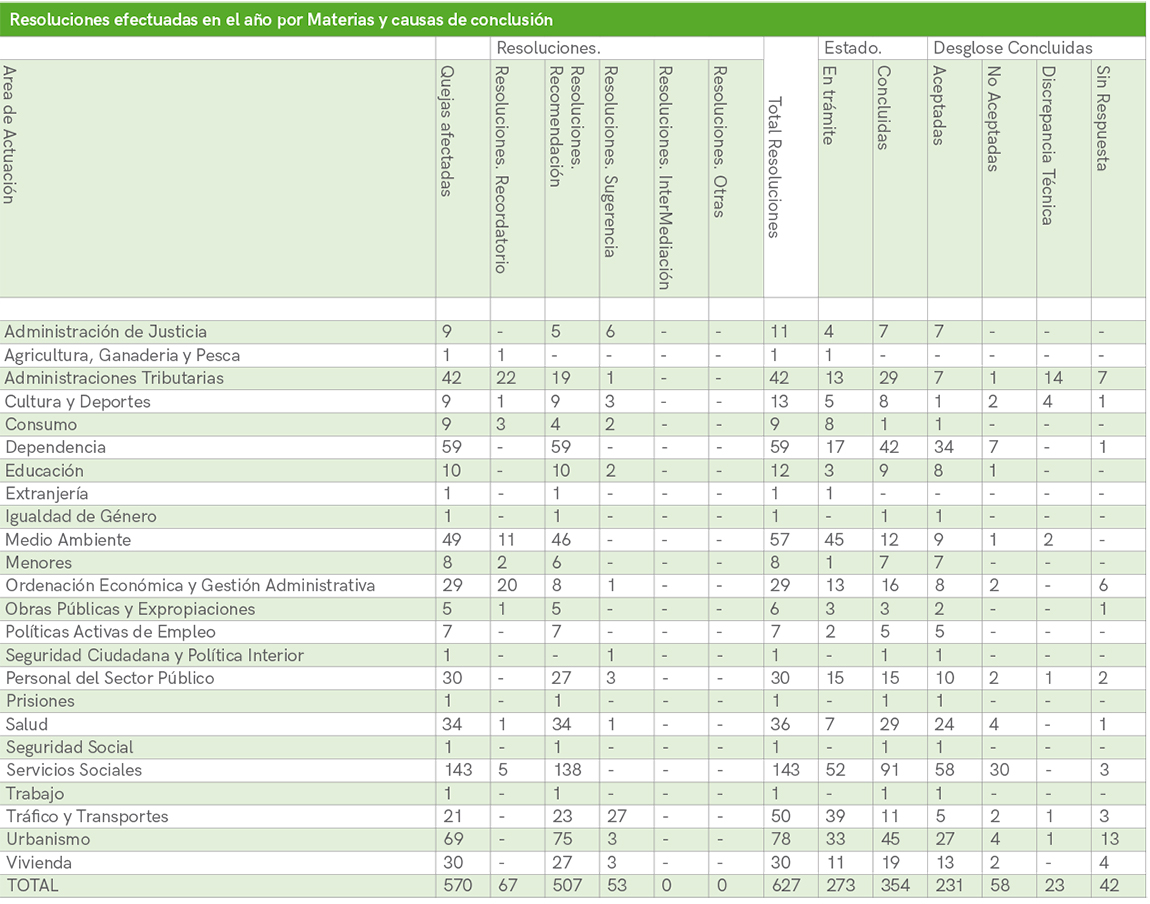 7. Resoluciones efectuadas en el año por Materias y causas de conclusión